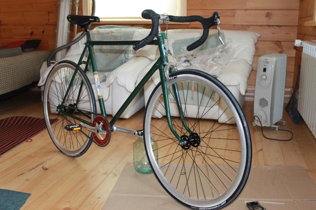 Понятно что данная рама, тем более паяная для фикса не очень подходит, но собрал для "попробовать" а вдруг понравится. Тест-драйв откладывается по причине несоответствия дорожного покрытия на улице шоссейной резине 622х23.