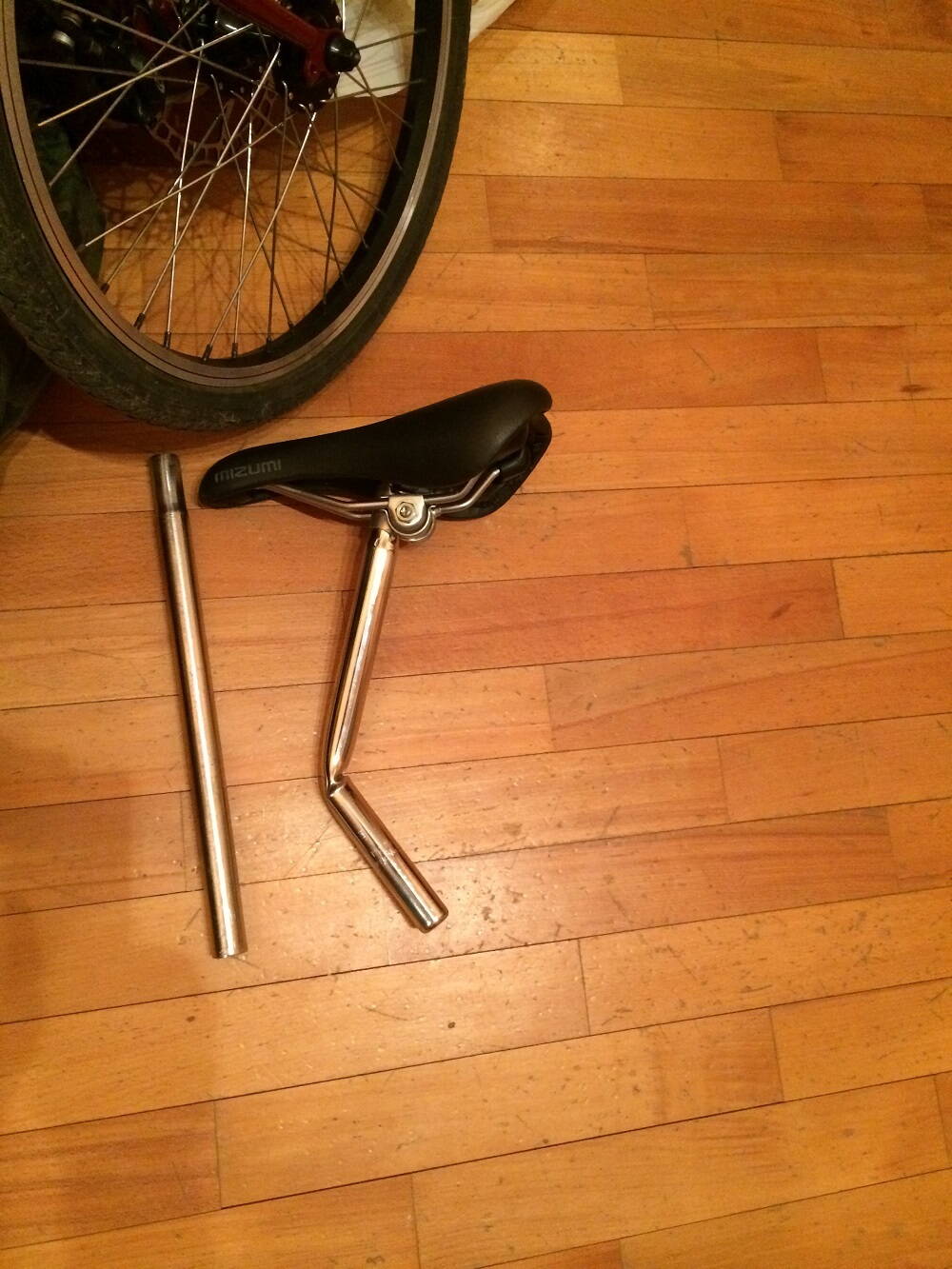 Я просто разогнался до довольно большой скорости, после этого нажал на тормоза, после этого велосипед со мной начал замедлятся, и по мере не большого снижения скорости меня плавно но быстро поставило на переднее колесо, то есть я неожиданно поехал на полметра или чуть больше выше чем до этого, и в таком виде я проехал метров 5, несколько напугавшись я быстро отпустил тормоза велик опустился/рухнул с этой высоты на заднее колесо. Китайский подсидел (который я купил по тому, что родной подсидел довольно покоцанный и поцарапанный) не выдержал такого и под моими 90+ килограммами изменил свою форму :lol: впервые вижу такое, усиленная рама выдержала. Родной подсидел возвращен на свое заслуженное место.