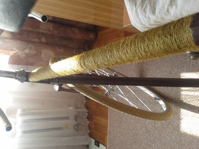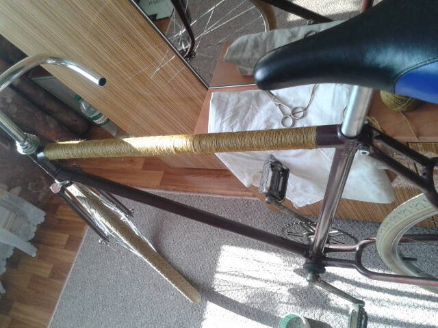 в общем дело было вечером, делать было нечего :smile: нашел моток джутовой нитки и тут в моей голове родилась мысль :twisted: а не сделать ли мне обмотку на руль из экологически чистого материала??? и понеслась.