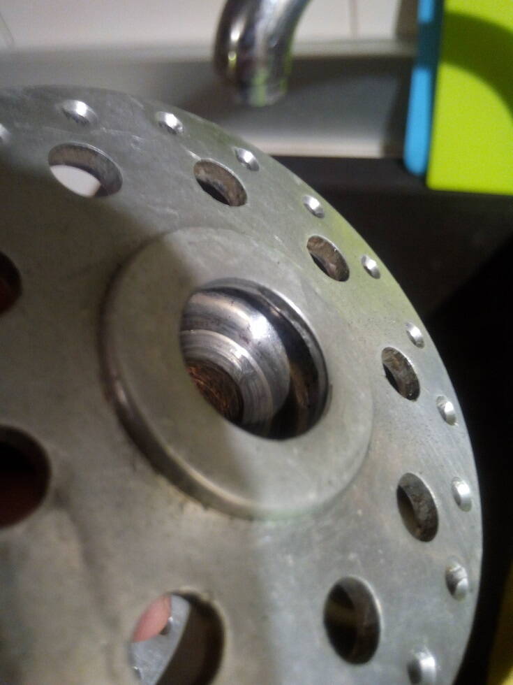 А если делать отверстие БОЛЬШЕ? Тогда буртик будет меньше. Его достаточно буквально высотой 1 мм, чтобы дать жёсткость шайбе и отцентровать ниппель в отверстии...