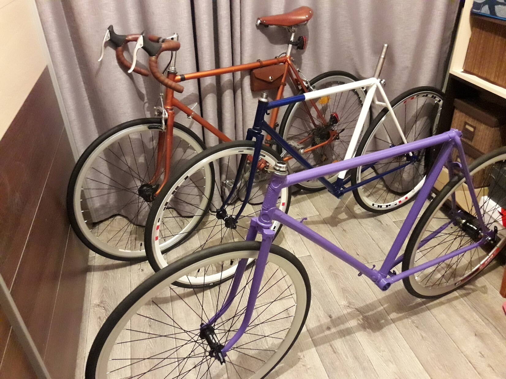 Внял совету бывалых и на своего спутника поставил широченные 700х25С, а узкие 700х23С перекинул на будущий стартон. Спутник постепенно становится все более классическим и потихоньку рождается еще один спутник, тот что для молодого поколения, сиреневый. Ну и с нетерпением жду когда соберу стартон. Столько сказано про его отличие от спутника, не терпится уже ощутить. Уже готовлюсь к штрафам за нарушение скоростного режима.