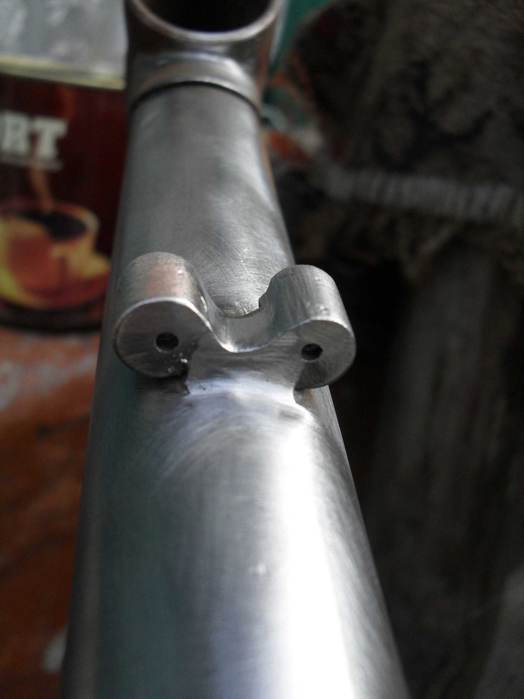 Из-за отсутствия оригинального хомута для нарамных манеток на моей Cinzia "Vittorio Adorni" пришлось поставить манетки на вынос, а пустое место на раме осталось для упоров рубашек тросиков, сейчас там некрасивая конструкция из металлических стяжек-хомутов для труб.