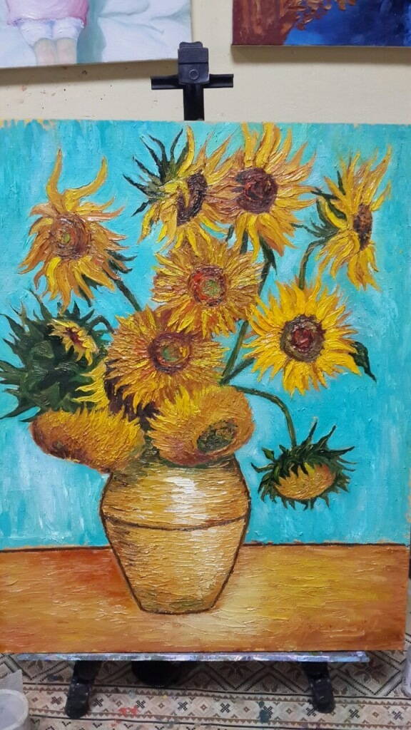 Вот последние несколько работ жены. Подсолнухи- перерисованный Ван Гог, какая то танцовщица Фламенко. И авторская ,мой заказ- композиция из одуванчиков на кухню. Думаю до рамы "Счастливчика" она уже доросла? :oops: