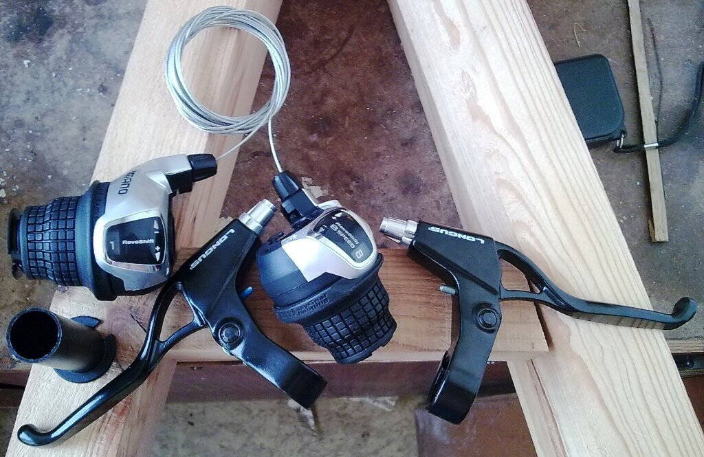 Купил сегодня тормозные ручки Longus (4-е пальца) и манетки Shimano Revoshift SL-RS43 (8/3).