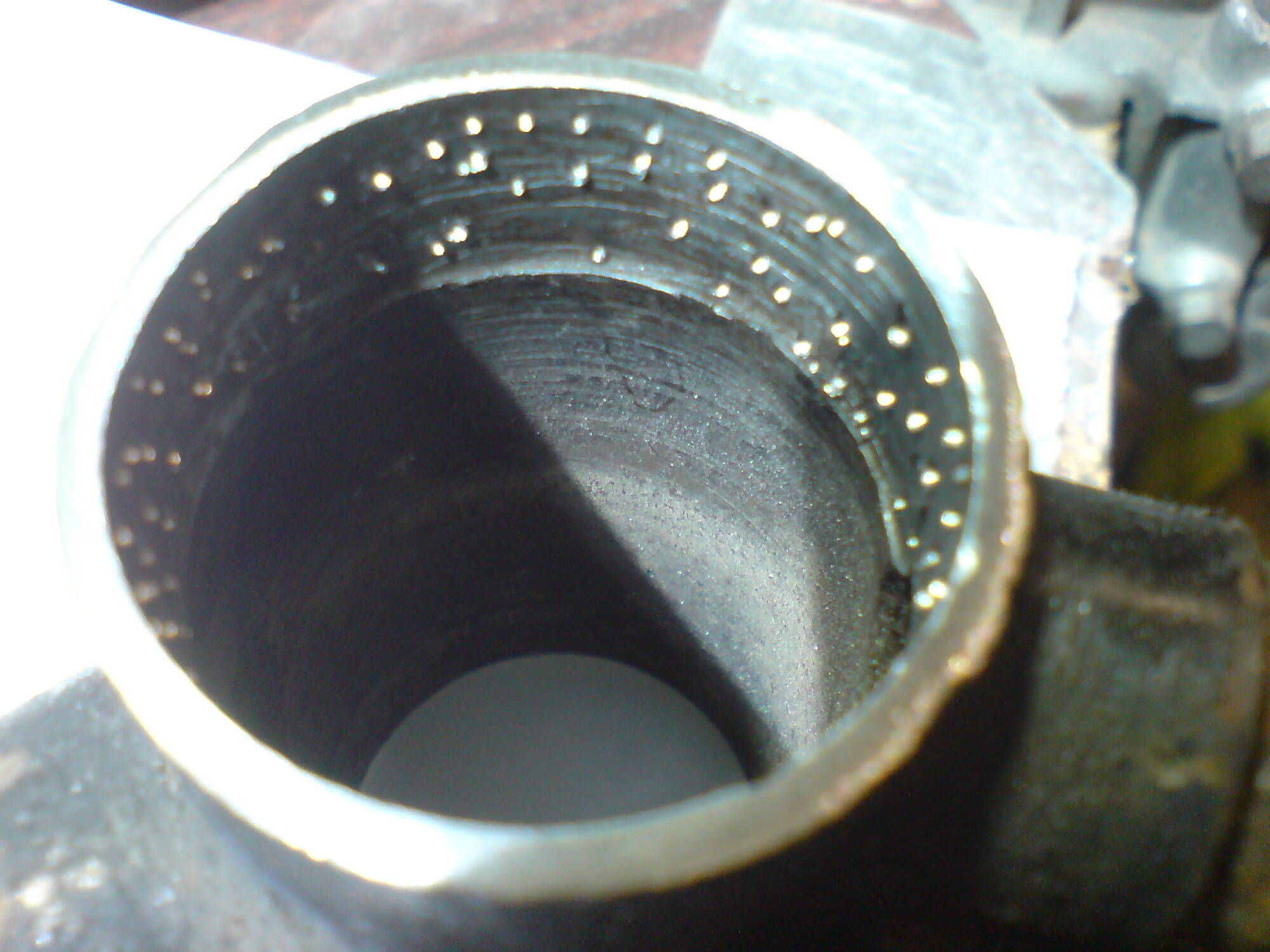 По фоткам видно, что сначала кернил стакан внутри, потом внешнюю часть.