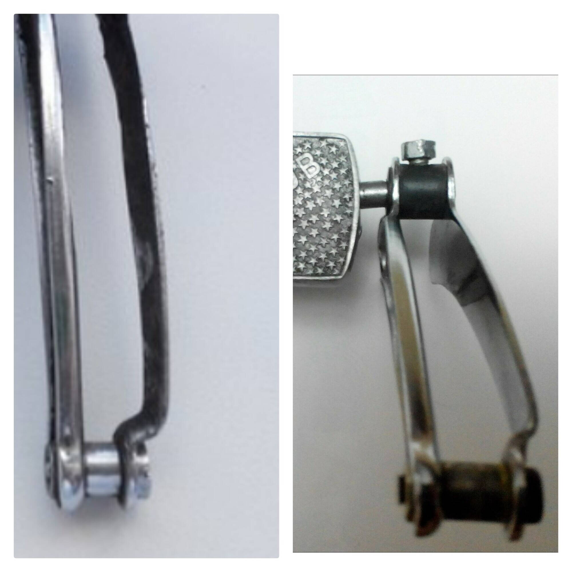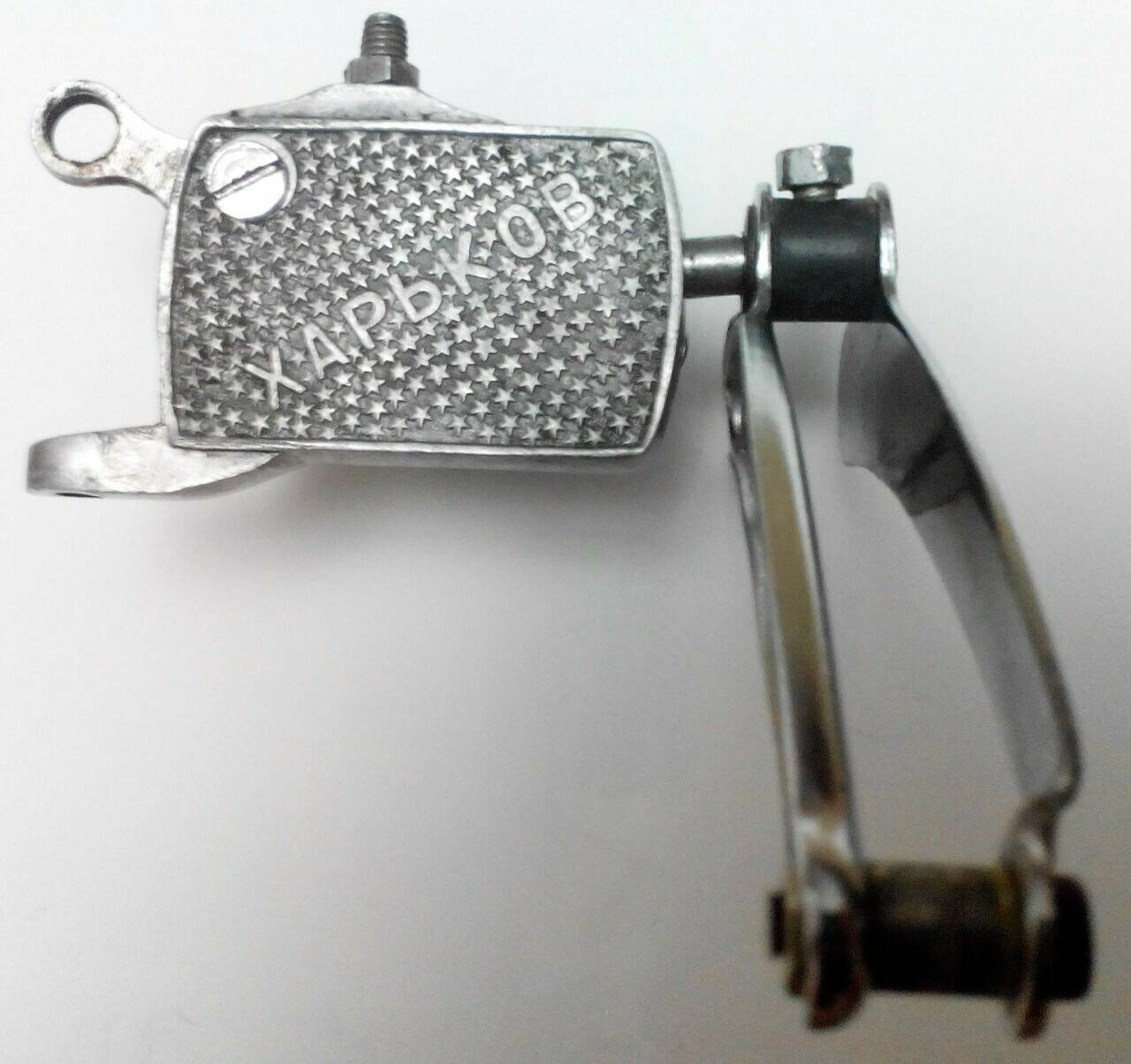 Есть один нюанс с рамкой переднего переключателя "коробочки", существует два типа ранний и поздний, отличаются расстоянием между щёчками рамки. У раннего расстояние небольшое, кстати похоже, что у Вас ранний вариант, а у позднего это расстояние заметно больше, так вот ранний вариант явно не удачный, получаеться, что родная многоскоростная цепь производства СССР почти неизбежно трёт по рамке, избавиться от этого практически не возможно, регулировки не помогают. Я столкнувшись с этим переделал рамку, заменив втулку на которой вальцовкой крепиться рамка, сделав её более широкой и заменил вторую втулочку (через которую стягивается концы рамки) более длинной.