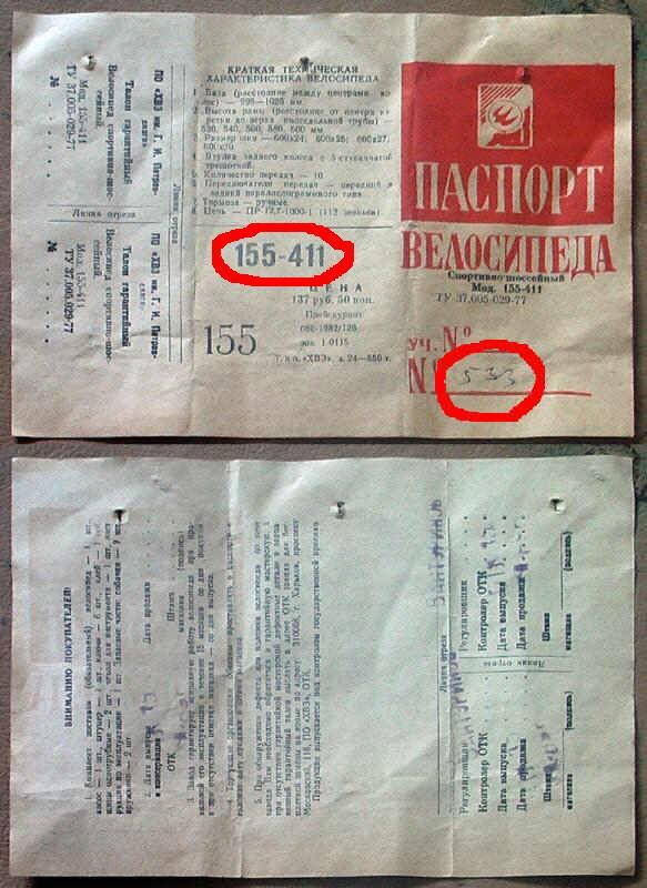 Информация для Sergius: Старт Шоссе с чёрно-белыми деколями "Старт-Шоссе" тоже является моделью 155-411 как и предыдущий тривиальный начала 80-х (в качестве доказательства ниже выложил фото), так что 155-411-ый как минимум выпускался до 91-го года включительно, а вообще если я не ошибаюсь последний Старт-Шоссе сошёл с конвейера в 1994 году, на нём все деколи были в виде наклеек в том числе и передний логотип на рулевой колонке, ранее где-то его фото скачивал на свой компьютер, пока не могу его найти, скорее всего он тоже 411-ый.