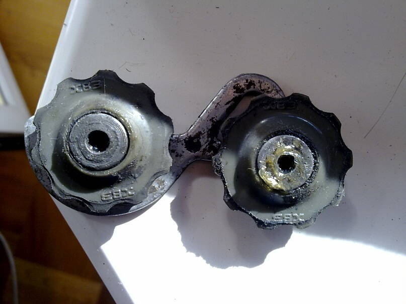 ролики на заднем переключателе пластиковые вместе с фланцами, похоже что внутри них нет подшипников