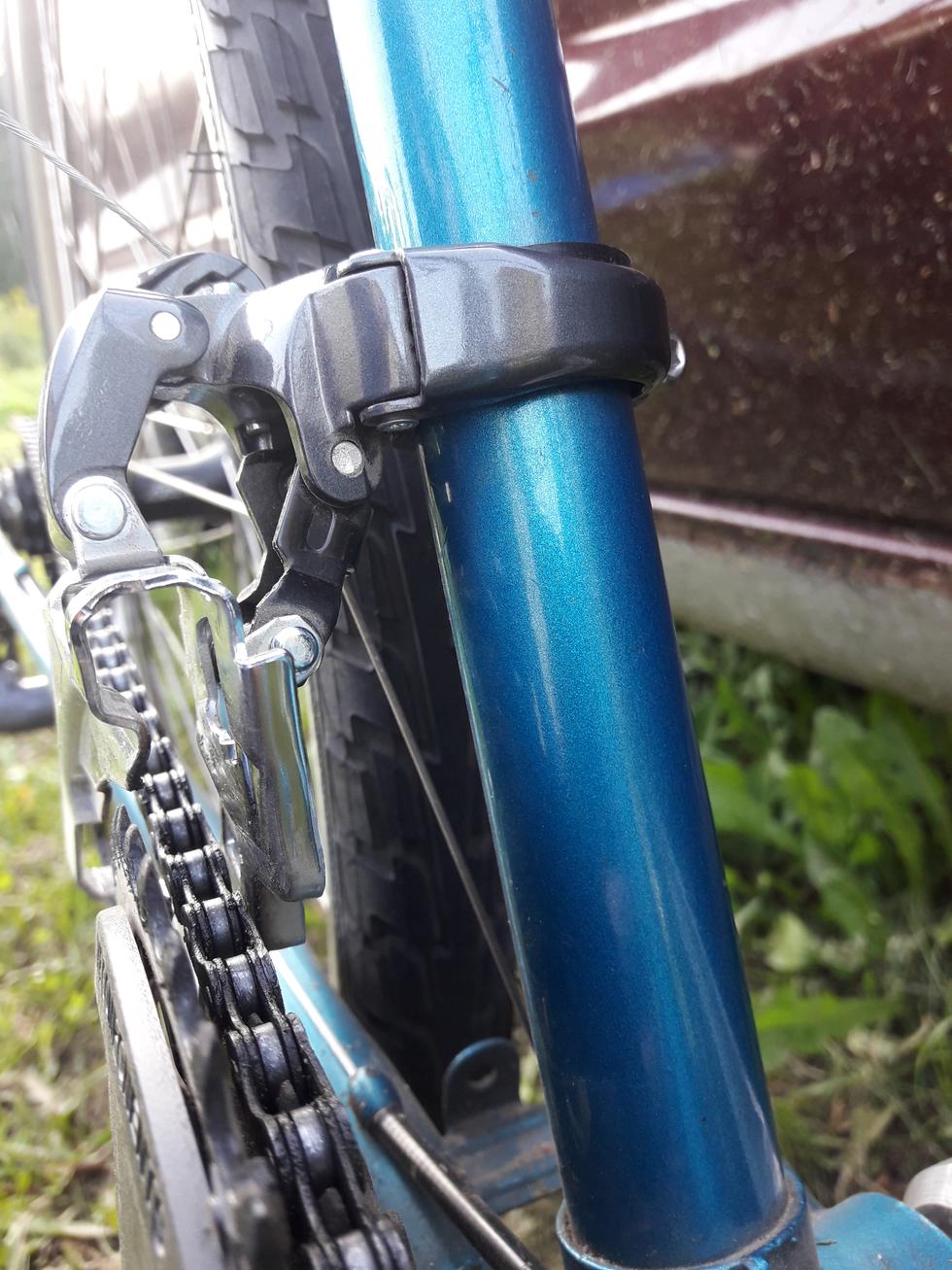 Все работает, но настроить его было весьма сложно :eek: Одна из причин - хомут переклюка расчитан на больший размер и в комплекте идут проставки. Так вот - качество этих проставок - отвратительное. :facepalm: Даже при полностью зажатом хомуте рамку можно покрутить руками при определенном усилии. Во время настройки несколько раз тросом стягивал переклюк вниз немного. Чем думали шимановцы - непонятно. :mad: