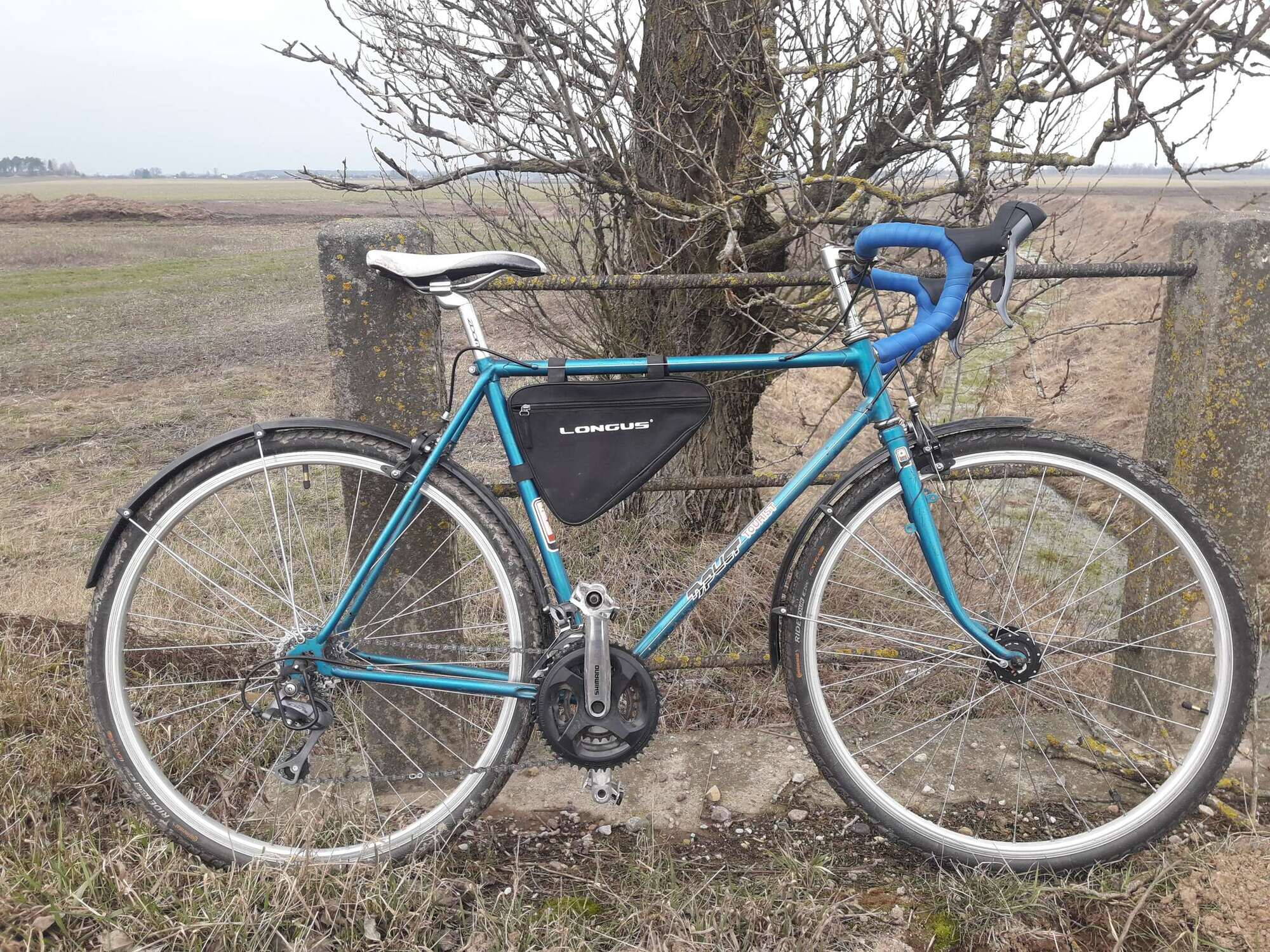 Вполне себе вседорожный велосипед получился - проехал пока не много на нем - 230км. Катаю на нем там, где шоссер не проедет. В планах - свет, багажник, флягодержатель. Флягу пока в старой сумке вожу. С цветом обмотки не угадал - на фотке у продавца вроде как была она как цвет рамы, а по факту вот такая..
