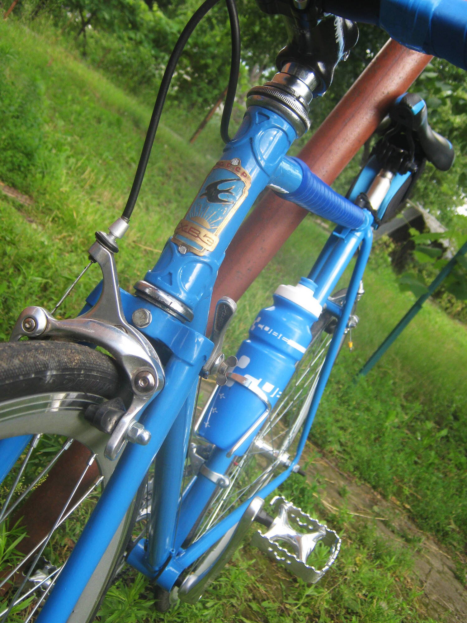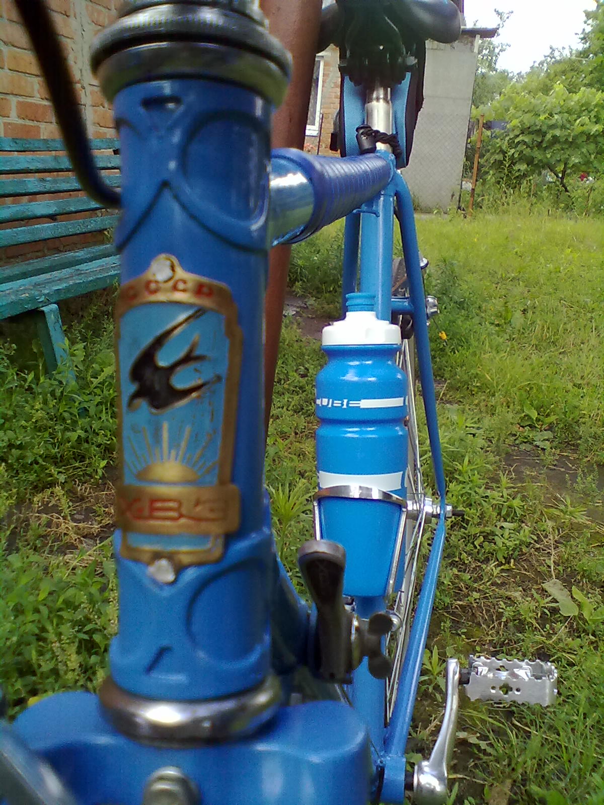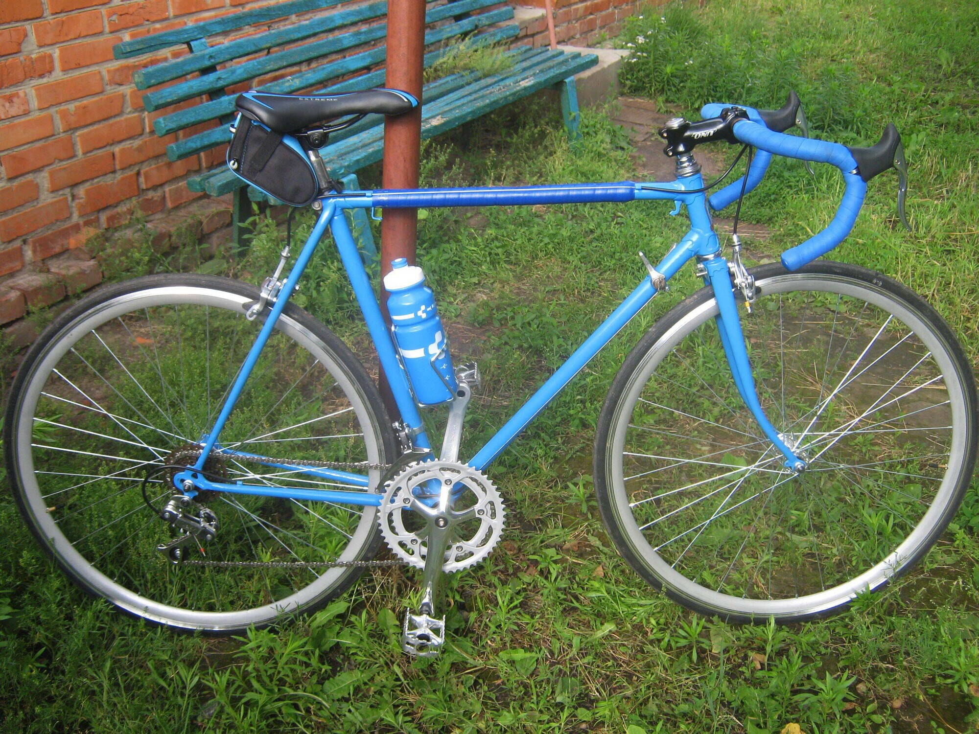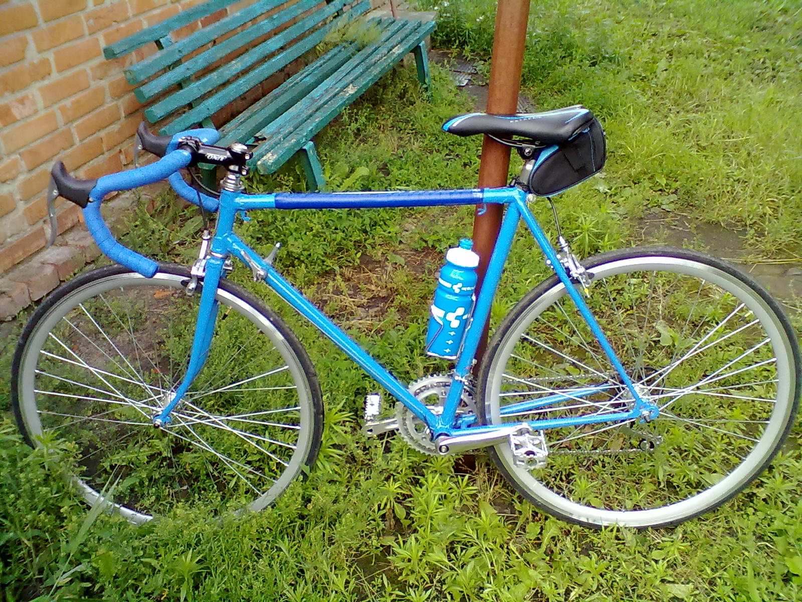 Я хотел, чтоб обмотка на раме и на руле была одного цвета, но когда Серега поехал второй раз за обмоткой, того цвета уже не было. Так что на раме темнее..
