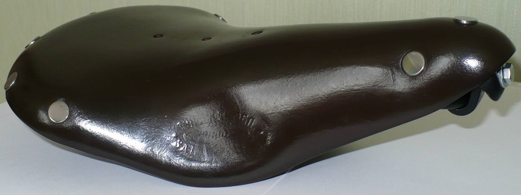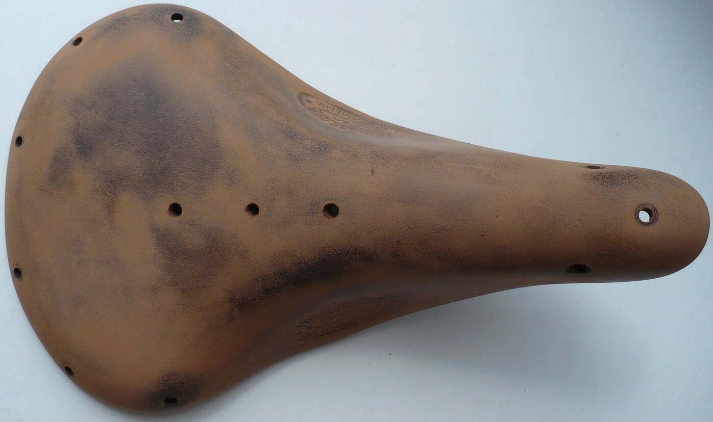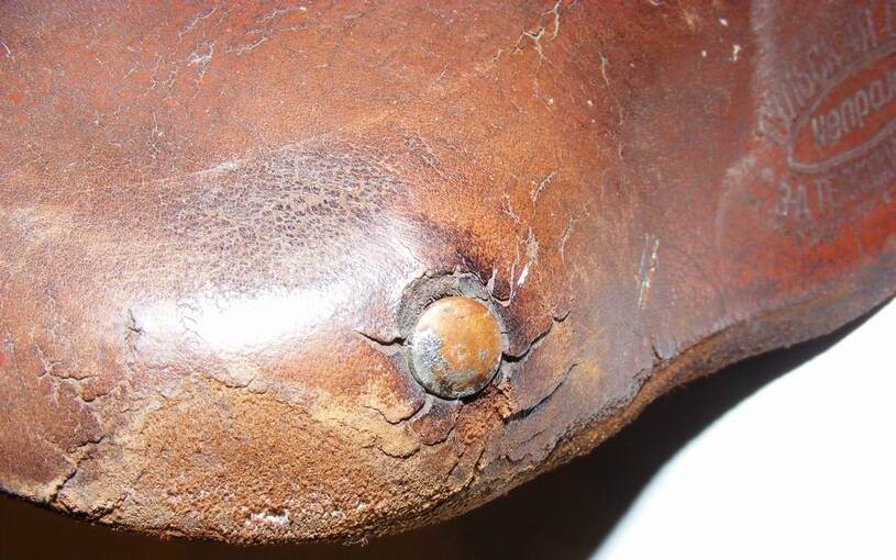 Не помогло выдерживание седла на подставке в накрытом тазу с водой на дне, сбрызгивание водой из псюкалки... Зато убедился, насколько хорошо воск для обуви защищает кожу. Вода просто скатывалась с поверхности. Воск смог убрать только шкуркой. Вместе с идеальной покраской. Только после двухсуточного вымачивания в желатине кожа вернулась в почти прежний размер. Еле смог натянуть на каркас. И то неправильно. Седло настолько укоротилось, что болт через носик в упор пришлось провести неправильно. Иначе не получалось.