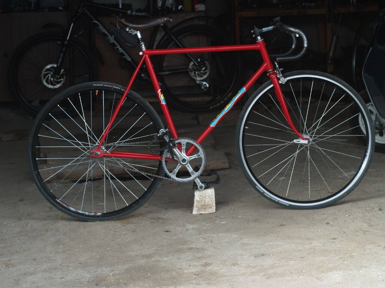 - Колеса: Аванти-базар (блин, реально крепкие и не дорогие, держат восьмёрки лучше чем у меня на всех горных), втулка переднего - китай-пром (буду менять на ХВЗ С-Ш, ибо красивее, а имеющийся экземпляр - в идеале)