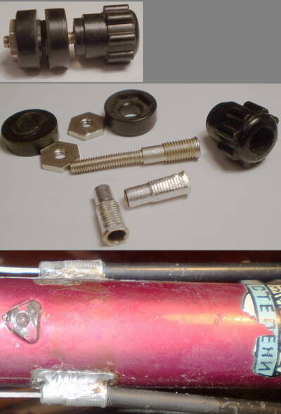 Я родные бонки на ХВЗ Турист расточил (до куда смог), а на месте родных манеток поставил уголки с отверстиями (с резьбой) на хомуте - в них закручены упоры (регулируемые).