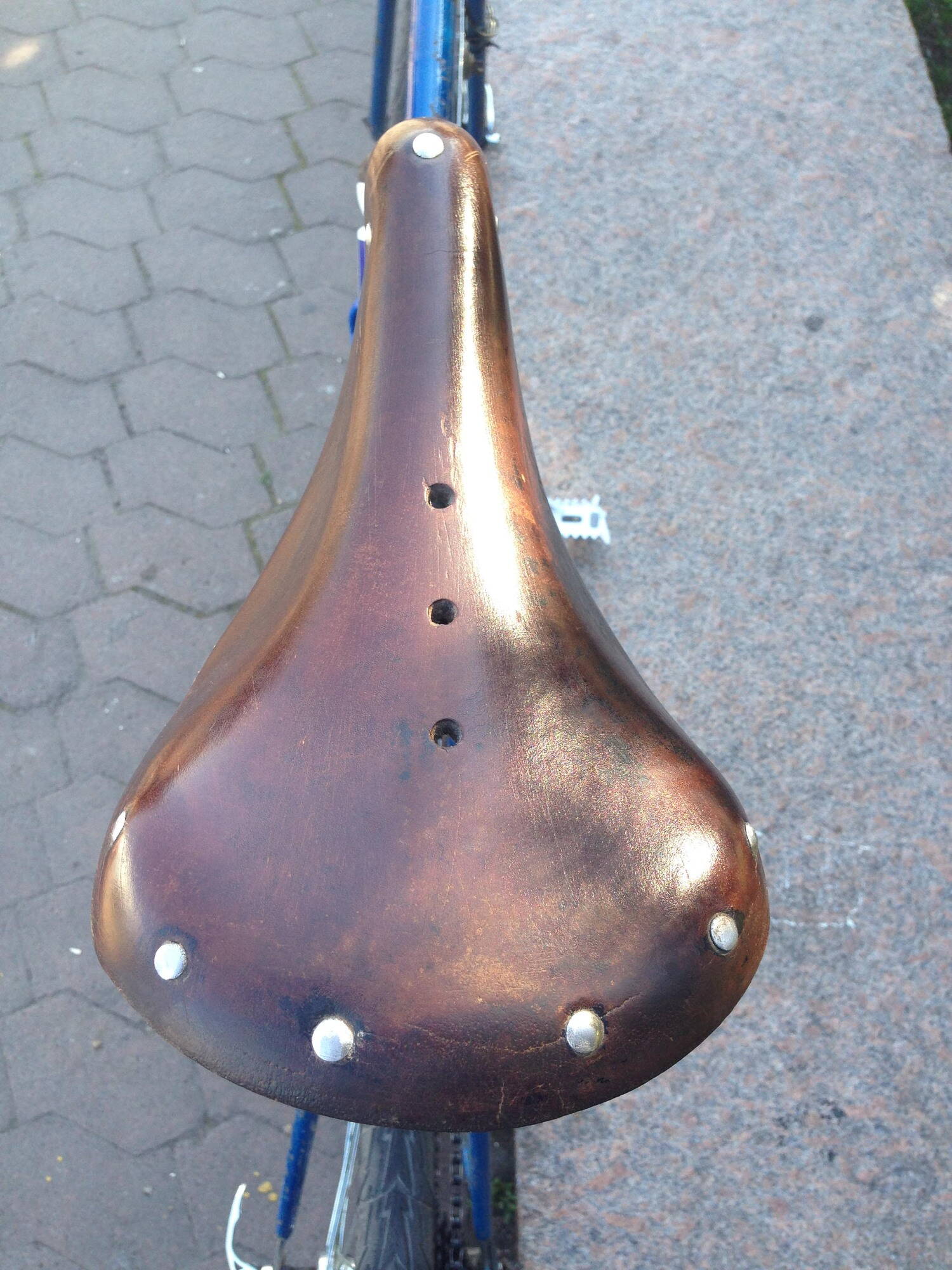 И пара фото седла - около заклепок появились легкие трещины, надеюсь, что не фатальные, но в целом седло выглядит отлично - шлифанулось частью меня и в благодарность приобрело удобство офисного кресла, даже по пересеченке нет нужды привставать, чтобы смягчить удары по тылу.