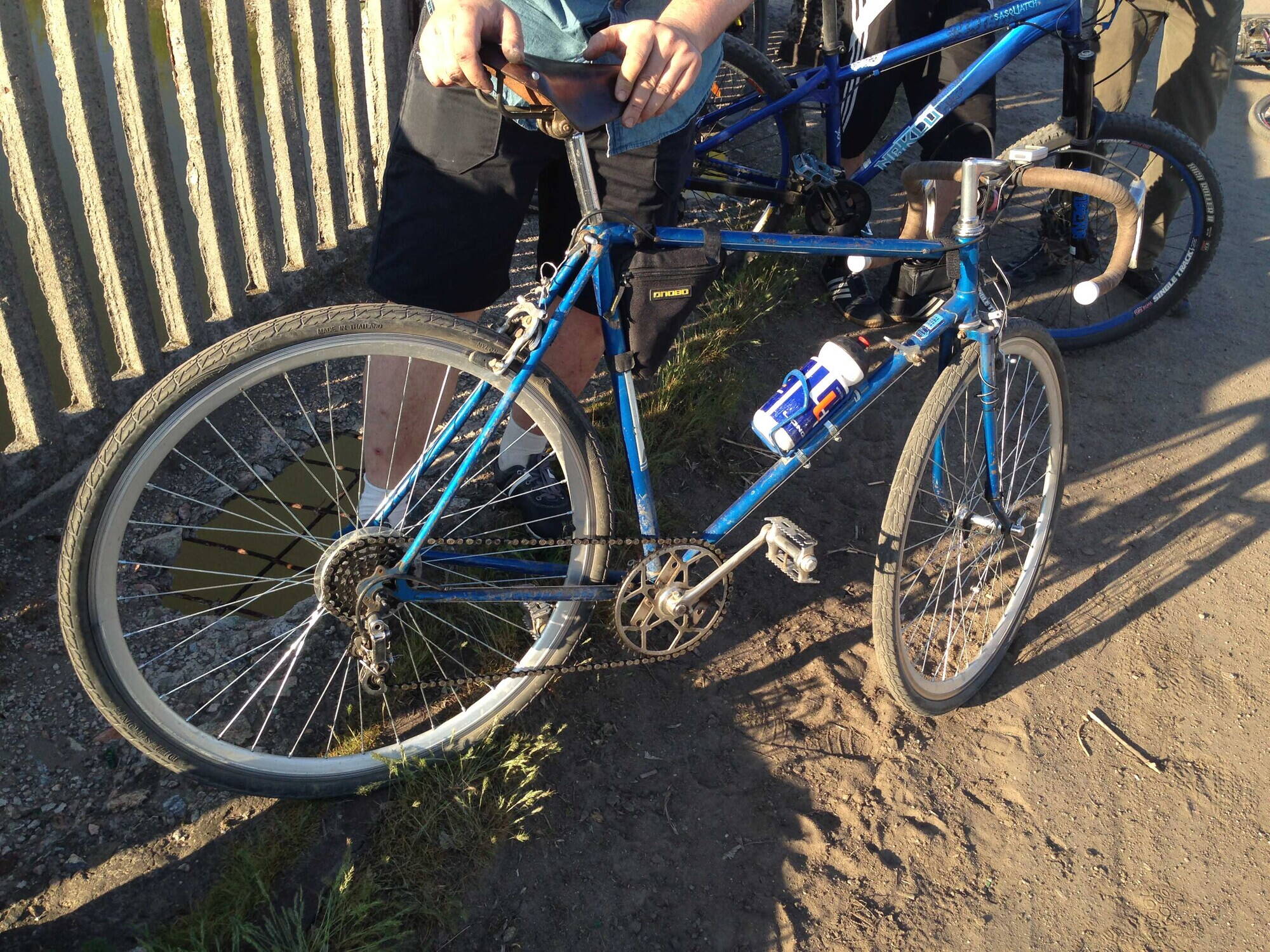 Обмотка под лаком показала себя отлично в плане износоустойчивости и маркости: при переноске через валуны на берегу карьера пару раз конкретно приложился к камню рулем, ну и переклюк в начале пути выделывался - цепь приходилось выковыривать из промежутка между большей звездой и защитой спиц, рука правая была ессно грязная от запыленной смазки, но на обмотке этого не видно. Сцепление руля в обмотке с рукой очень хорошее.