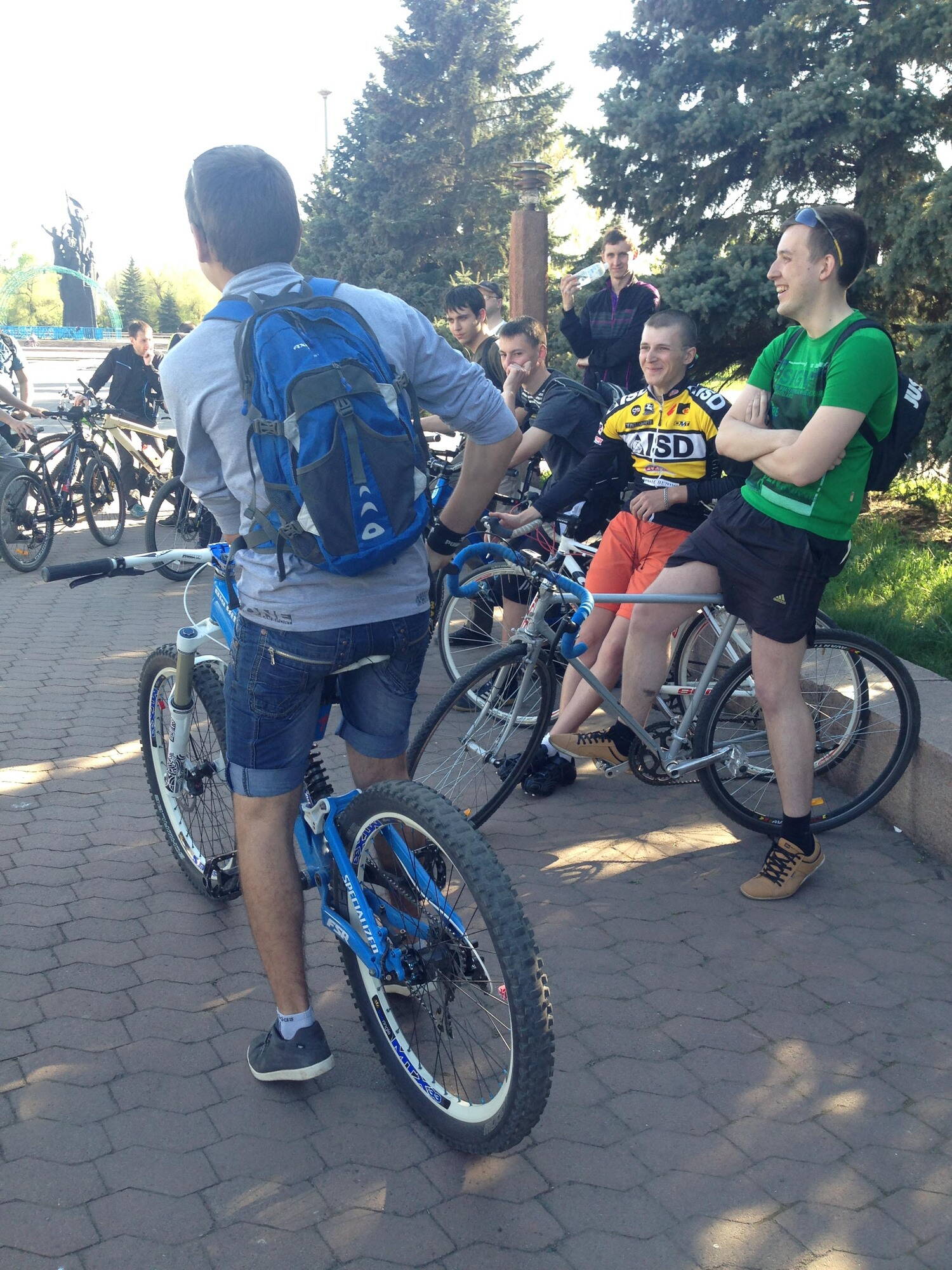 Среди разнообразных мтб на не большом вело-дне мой легкодорожник и два шоссера: стартик серого цвета с ужасным выносом и наклейками на ободах, но стартик (у парня в зеленой футболке) и следом шоссе giant у парня в желто-черной футболке (к слову чемп укр среди юниоров вродь как) выглядели пришельцами из другого времени и (или) места. На стартике посмотрел покраску порошковую нашего умельца, вродь норм качество.