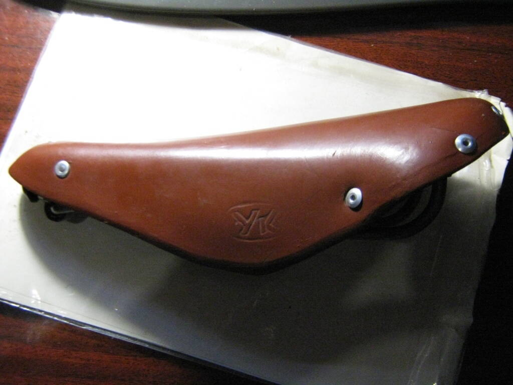 Краску снимал жидкостью для снятия маникюрного лака -"Ноготок" , покрытие заводское не снимал. Седла пропитывал Пруфидом. Пробовап трековое 120 мм шириной и обычное 14.5 мм. Удобнее оказалось на втором, хоть оно попало ко мне в худшем состоянии - оставил себе, прошел на нем около 200 км, пока нравится. На более широком седле менял родные заклепки на латунные. Их нашел на радиорынке 50 грн за 250 шт, клепал шариком.