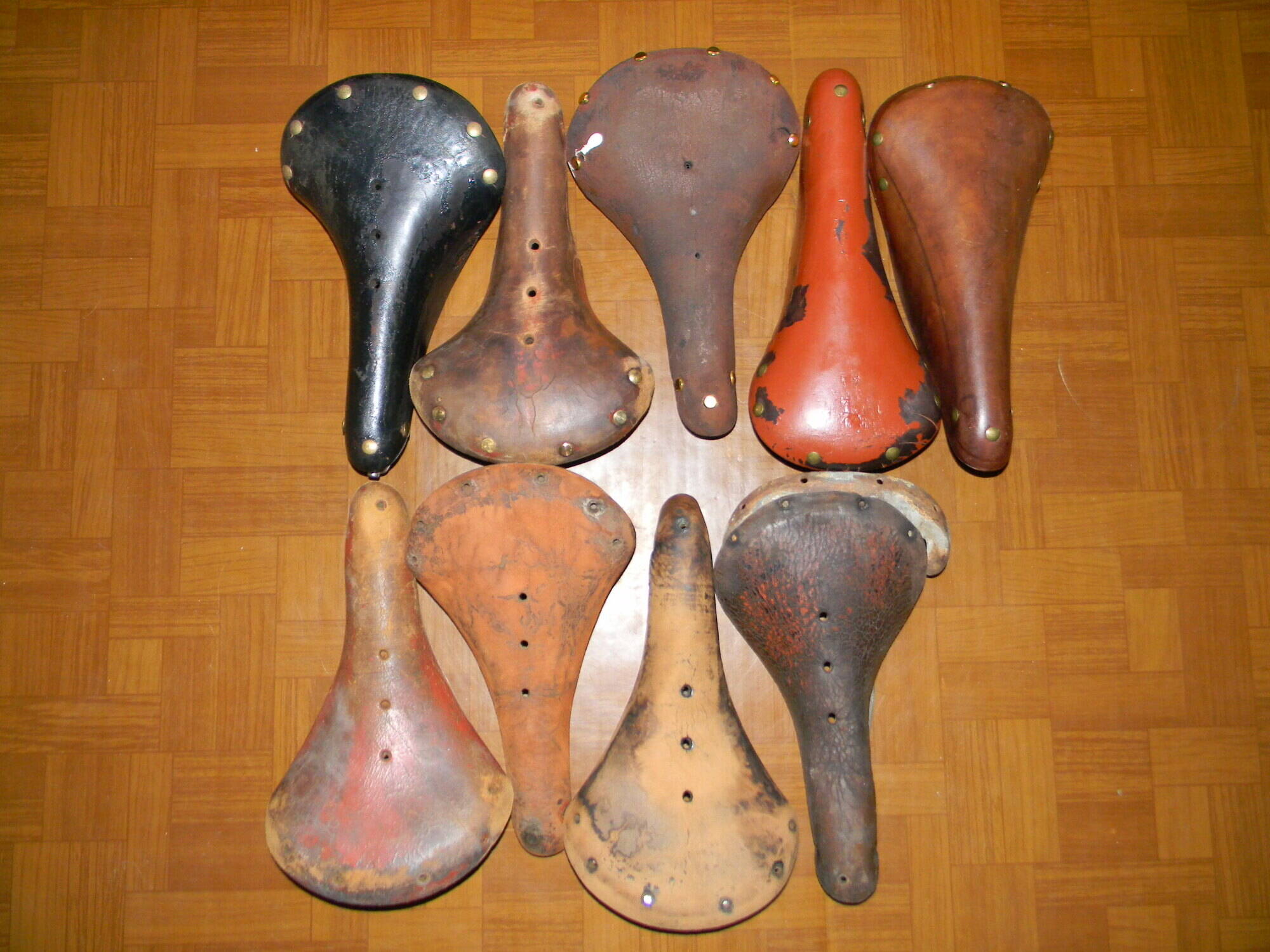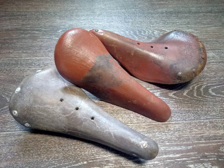 Добрый день. Скажу честно читал 160 страниц этой темы, с перерывами правда, поэтому некоторая часть информации могла все же улетучиться из головы. Подвернулось вот такое седло, собственно и купил его (фото прилагается). Толщина кожи 5 мм., твердая, гладкая (наверное покрыто чем то?), при постукивании звонкая как дерево, небольшие микротрещены присутствуют и пара потертостей, в задней части, там где располагаются седалищные кости есть слабо выраженные выпуклости. В комплекте были 3 заклепки. Седло на запах, как чехлы кожаные от старых советских фотоаппаратов, подкладка тонкой кожи плотно приклеена снизу. Ширина седла в задней части 15.5 см., длинна до носа 28 см., между рамками рабочей поверхности длинна 3,6 - 3,7 см. Прошлый владелец пробовал красить каркас, чем не знаю.