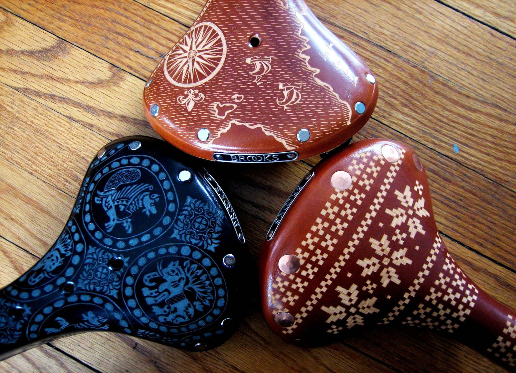 Если кратко: Разобрал, болгаркой (круг типа наждачки) снял немного, прошолся по трещинам и так далее. Потом в ход пошли краска для кожи, антик гель, єто все стало коричневым. Потом нанес рисунок белой акриловой краской. После, два слоя лака для кожи. И фсе) Седло думаю порадует еще долгое время....