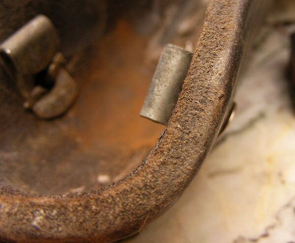 Взял основу и поехал на барахолку примерять шкурку. Оказалось, что родная. Причем новая, даже без дырок под заклепки. Краска слегка осыпалась, под ней видна структура кожи. Шкурка двойная, в отличии от дедушкиной: