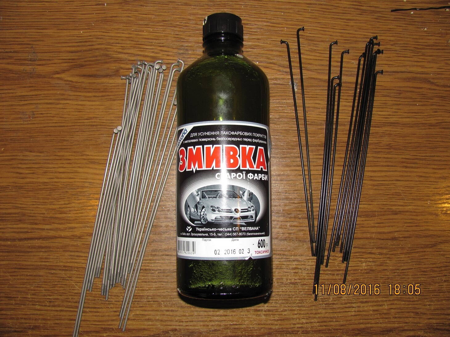 Пару слів про змивку. Лугу мало (мабуть тільки рідке скло як загущувач) - руки не їсть, значить можна використовувати і по алюмінію. Але розчинник - ще той крокодил, пластики розчиняє майже миттєво. Тхне чортом (як і всяка інша хлорорганіка).