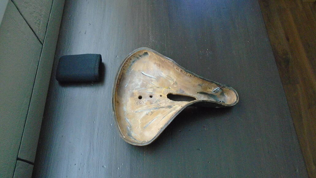 нашел еще такое седло с относительно целой кожей: