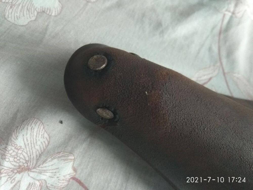 Вот еще пример. Продается на Авито как Brooks с изъяном, сломана рамка. Но без документов и коробки. Заклепки белые. 2017 l 7 и made in England на рамке Запросто может оказаться и товаром с Али , соответственно вопрос - ломаются ли рамки с Али и нормально ли ставятся на подсидел ? Ломаются ли рамки на Бруксах, читал что на рамках Бруксов мало места для маневра положения седла вперед -назад.