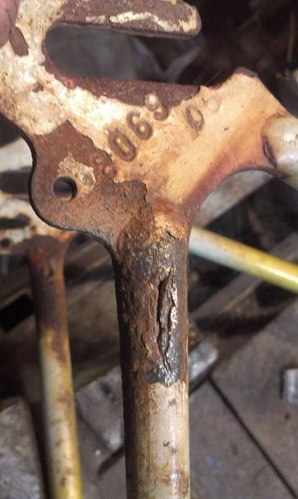 Ну вот такой поциент прибыл. Редчайший вариант ЗИФа зовется мустанг. К сожалению сгнили напрочь верхние перья в местах крепления к дропам. :cry: Будем лечить. :yes: Собственно удалю старые перья, приварю новые. Только трубки купить надо.