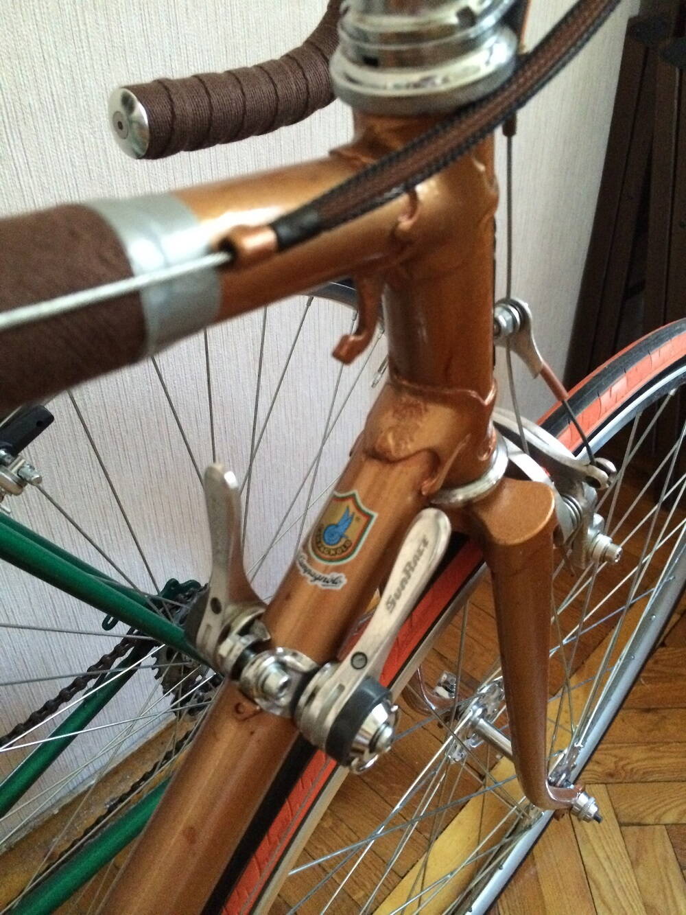 Не знаю, верно это или нет, но с точки зрения эстетики по-моему не сочетаются деталюхи с кучей надписей Кампаньоло и хвз-шные декали) Либо раскрашенная рама и детальки без надписей (или с маленькими аккуратными)), либо расписные детальки и одноцветная рама с аккуратной надписью. А то нагромождение какое-то)