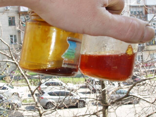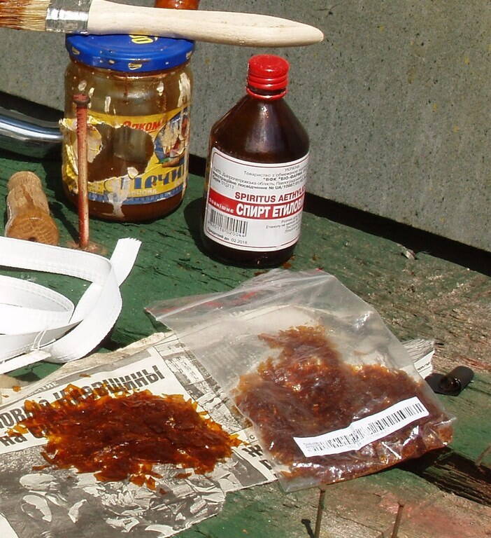 А у Вас раствор получился янтарно-прозрачный, или мутный? Цвет - понятно, что светлый, но мутность? Вот у меня, который светлый download/file.php?id=244123&mode=view/P1010060.JPG - он прозрачный в банке, а тёмный мутный. Хотя когда высыхает, той мути нет...