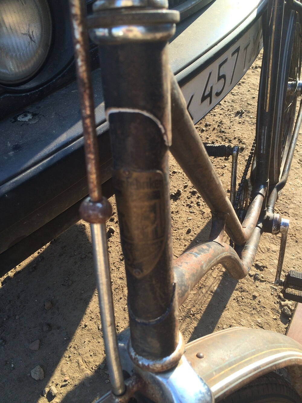 Встретил на выходных вот такой Simson, владелец продать отказался на отрез, сказал что велосипед попал в СССР сразу после войны, год выпуска найти у него не смог, велик достаточно бодро ездит.