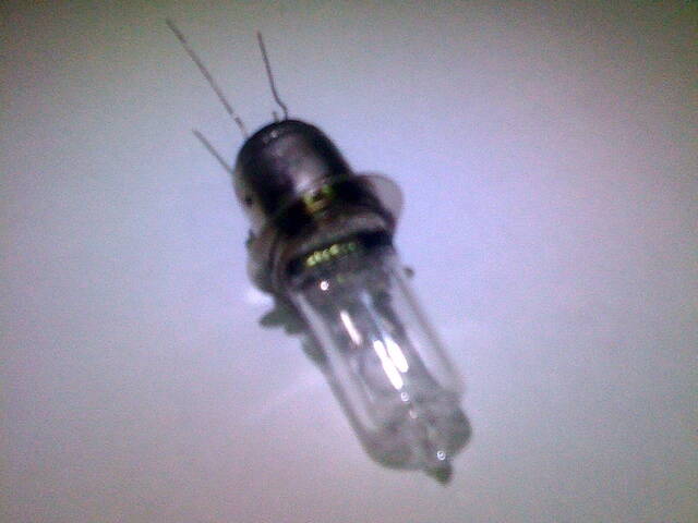 Оставалась еще одна фара из комплекта. В ней было решено заменить родную лампу на двухрежимную галогенку 6В 10W от аккумуляторного фонаря стоимостью 30 рублей.