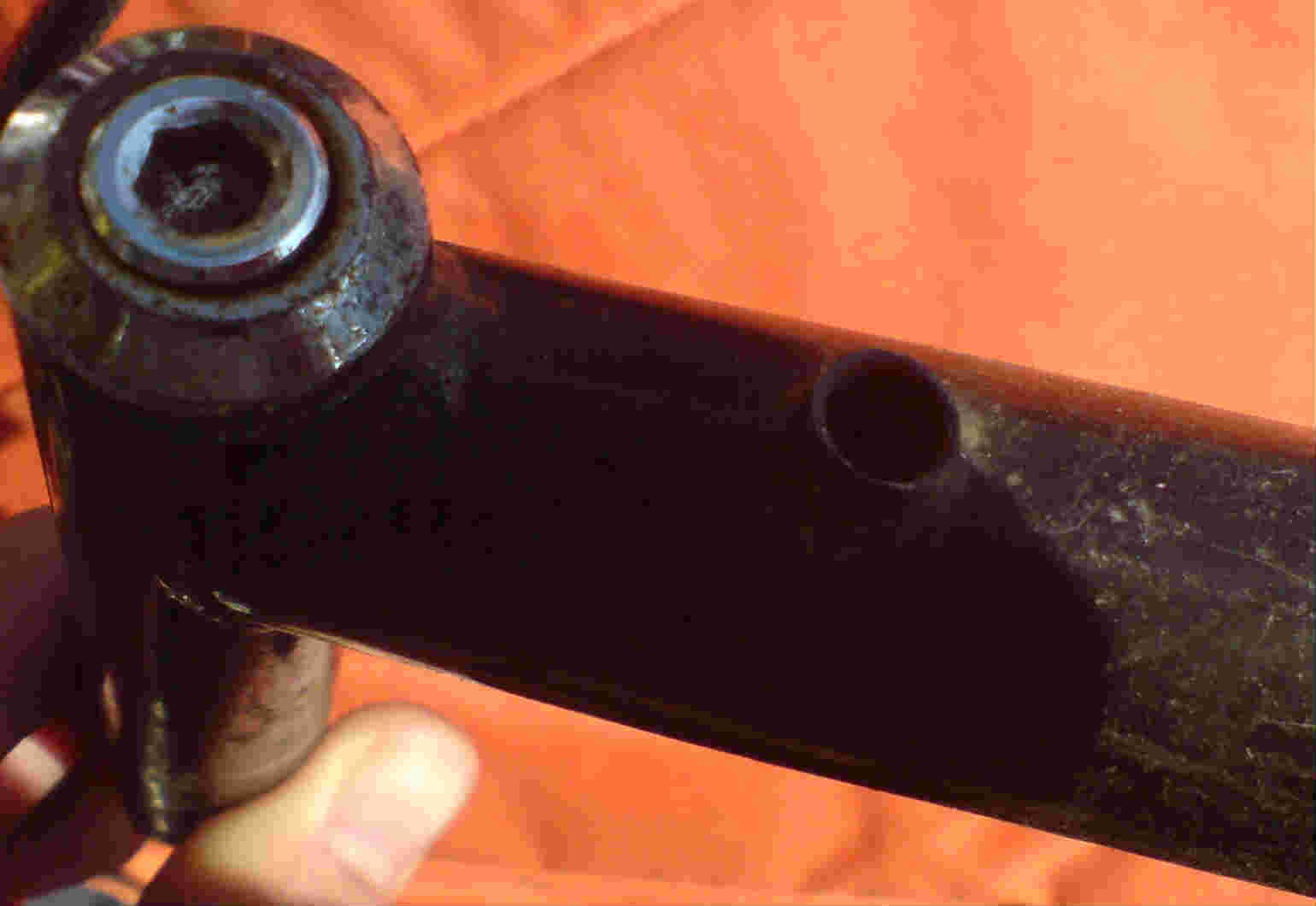 Да отверстие это упор для троса переднего тормоза, по выносу, не ну может же быть и такого плана вынос, если не понравится то можно поменять.