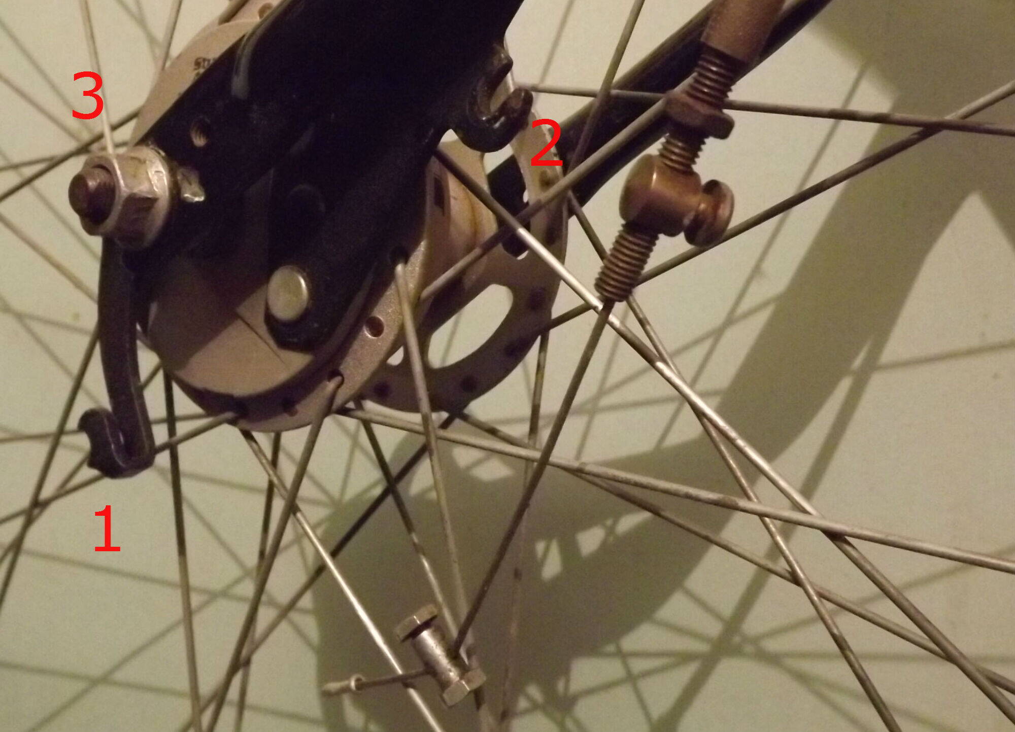 Евгений76, кроме осевых гаек- крепление тормозного рычага к перу через хомут , крепление тормозного троса к( блин, тоже тормозному рычагу ?) рычагу, разводящему колодки, оно, правда бывает в виде серьги, но ослабить натяжку тросика придётся, возможно, на ручке тоже. Итого, в лучшем случае +2, плюс инструмент.