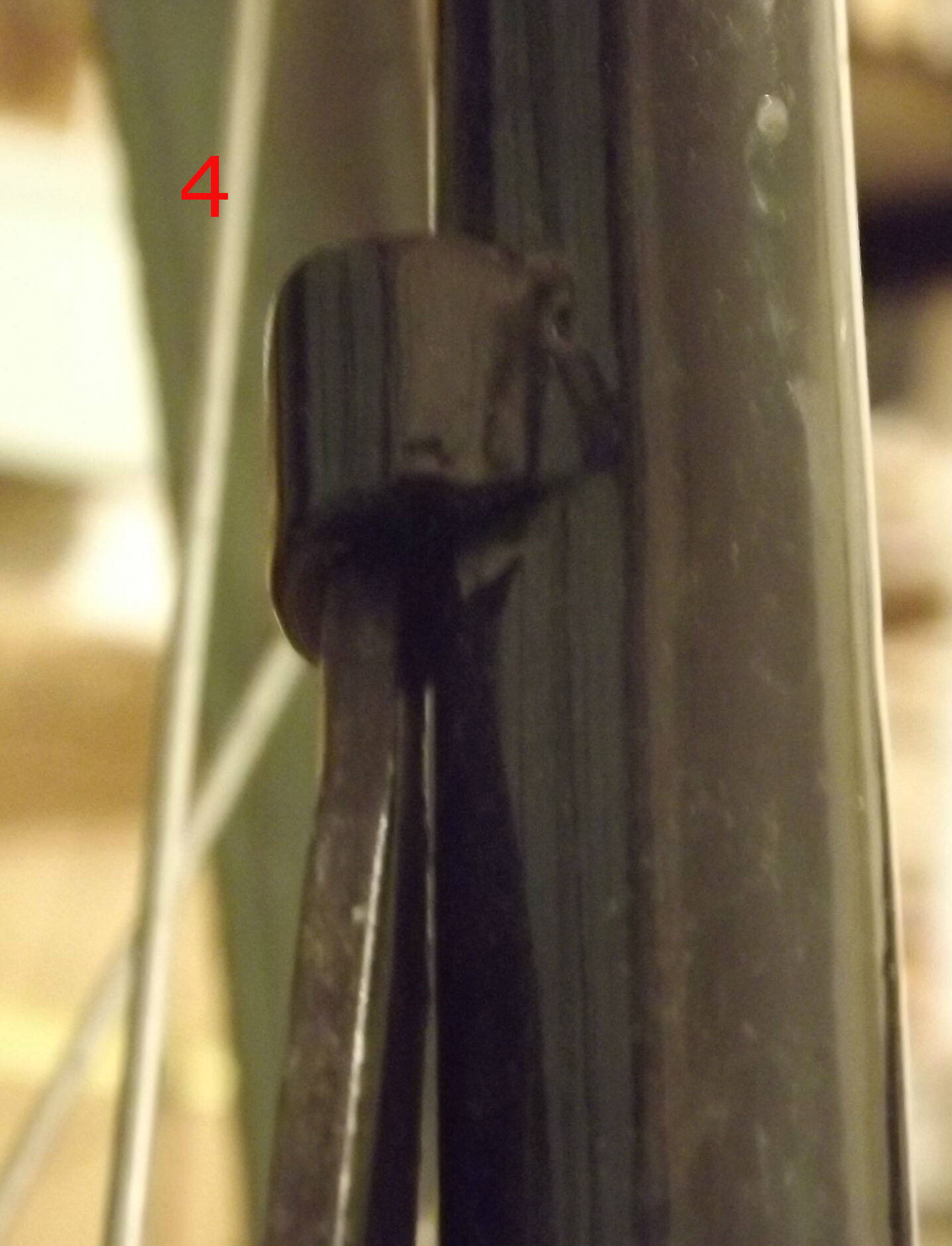 Ладно, тросик сняли с лапки, колесо вытащили и ... оно болтается на рубашке троса . Всё-равно упор надо отсоединять. Ну напряжно жеж привязанное колесо лечить.