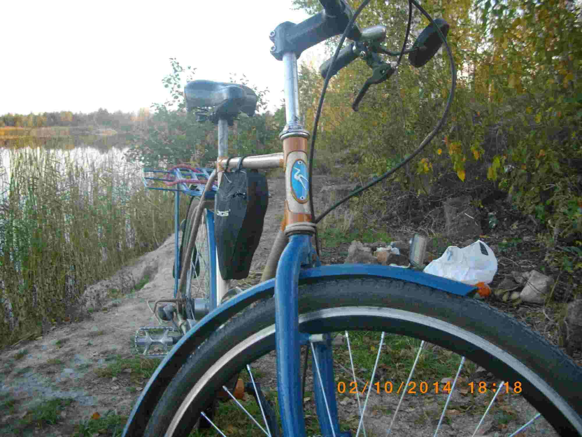Ну что... Со слов продавца, велик 70х годов. Не ездили давно. Ну так вроде всё крутится, вертится, не скрипит, но и тишиной вращение не сопровождаются. Углы рамы, действительно, забавные - но прокатился от силы 10 секунд ))) пока не понял ничего. Обода разные: