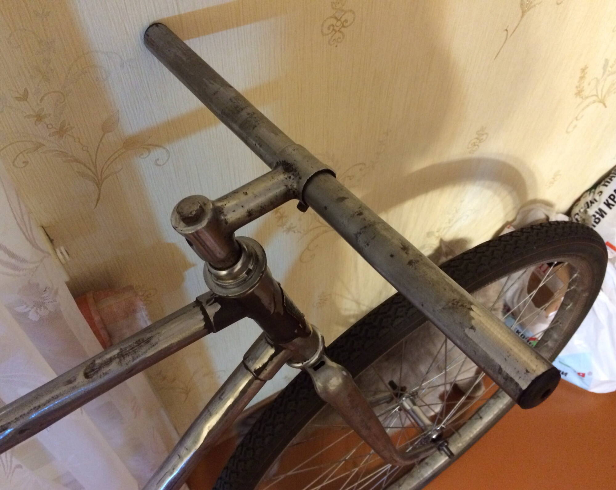 Теперь к трудностям и проблемам. Как можно заметить руль и вынос не совсем тру, они стоят сейчас просто чтобы было удобно. На колесах 40я резина, не знаю какая в оригинале, но вид этой и ее состояние вполне таки меня устраивает. Необходимо заменить переднюю втулку, либо развести вилку, хотел узнать что из этого вы бы посоветовали. Шатуны к сожалению потеряли свой вид, подогнуты, и уже немного разбиты посадочные места. Их точно под замену, на обычные украиновские но в хорошем состоянии. Каретка не совсем хороша, но для начала пройдет, просто немного шумит, есть выработка, но крутится хорошо и люфтов нет. Задняя втулка почему то тоже шумит( хотя смазана была нормально и собрана аккуратно, как работает еще не знаю, не ездил пока.
