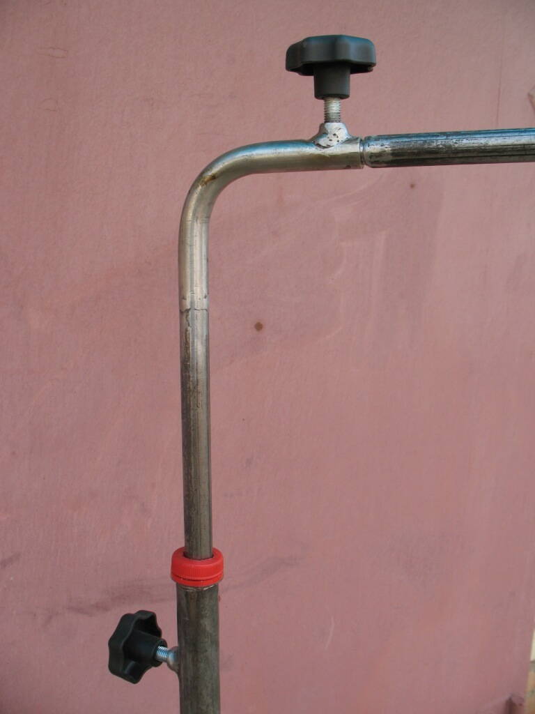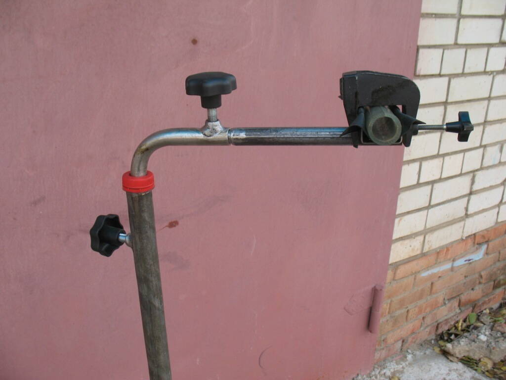 -вел вешается за горизонтальную трубы и прижимается 1-2 струбцинами, верхний шарнир даёт наклон