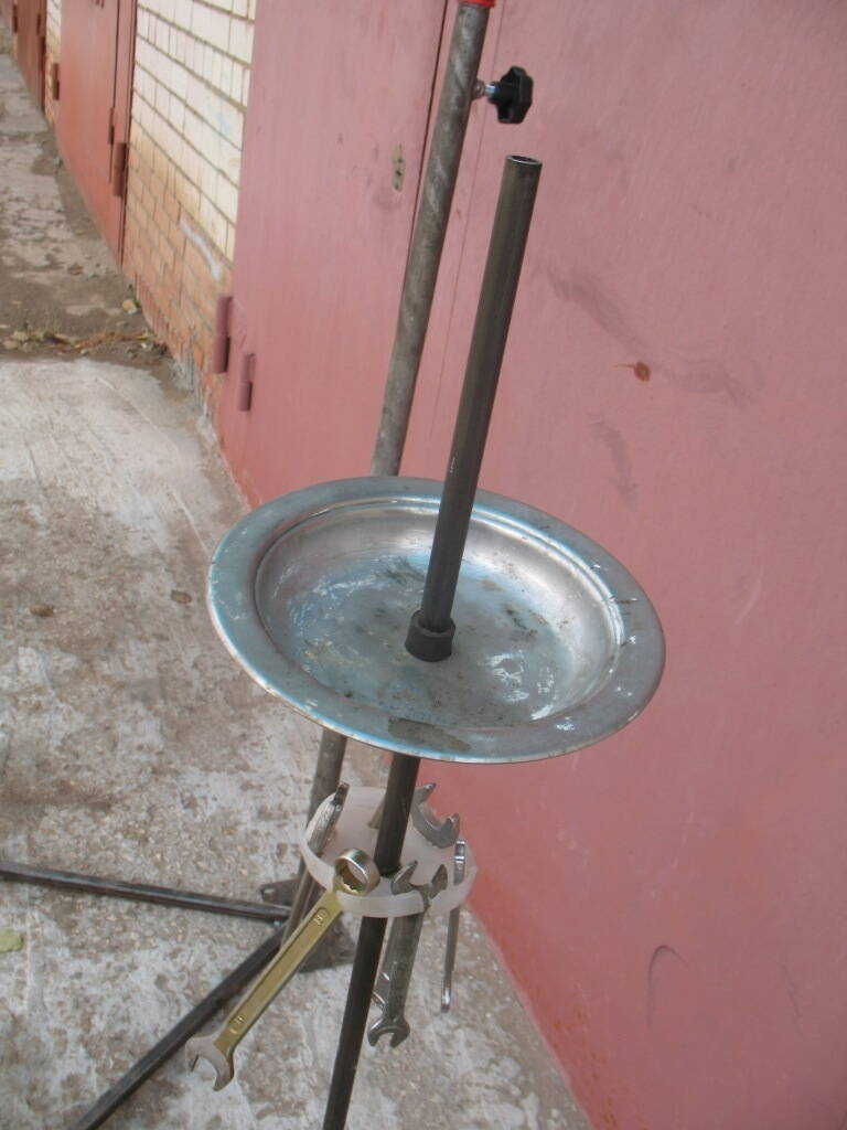 -рабочая часть из квадратной трубы со срезанной болгаркой стороной, ровно в размер толщинырамы моего хардтейла.При работе с тонкой рамой использовал кусок полиэтиленовой трубы разрезанный вдоль.Необходимо учитывать центр тяжести, то есть вел должен висеть, где то мосредине основания. у меня 32 см. если ближе педали будут задевать за стойку при настройках переклюков и тормозов