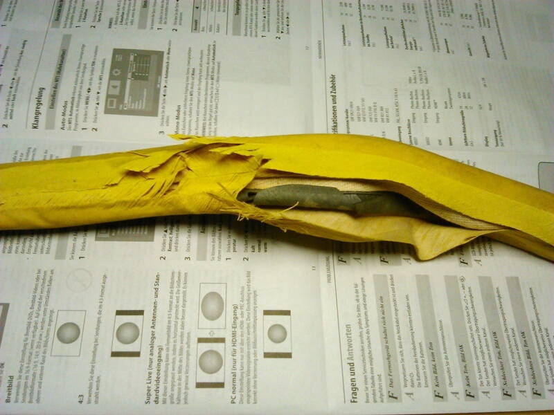 Возвращаясь к трубкам, вот ещё один пациент. Расклеилась и взорвалась при давлении меньше 6 АТМ. Новая некатаная.