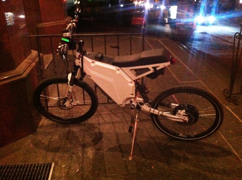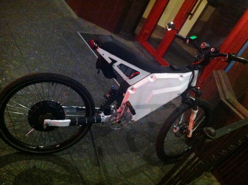 Тут на днях пересёкся с человеком говорит сам собрал. Поговорили о том о сём, я немного покритиковал спицовку заднего колеса, глазел на всё остальное. Агрегатец я вам скажу интересный, со слов владельца 200-250 км по правому берегу Киева выкатывает, по левому говорит итого больше получается, без подзарядки.