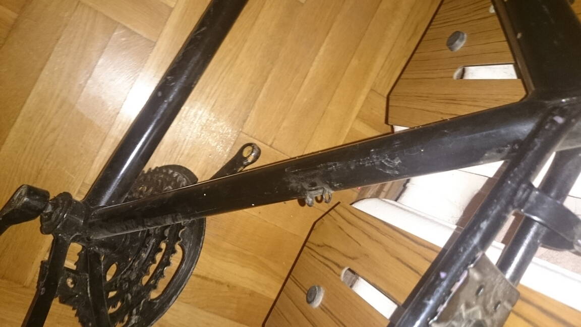 Пацики купили за 2 ЕУРО раму, ну планетарки, пару коліс, ще щогось, раму тримали до свята, от сьогодні подарили, нижче фото. Продавець казав що то рама фірмова, незнаю, я в тому не шарю, поможіть ідентифікувати, рама має верхню тягу на перекинду і цікаві бонки під троси