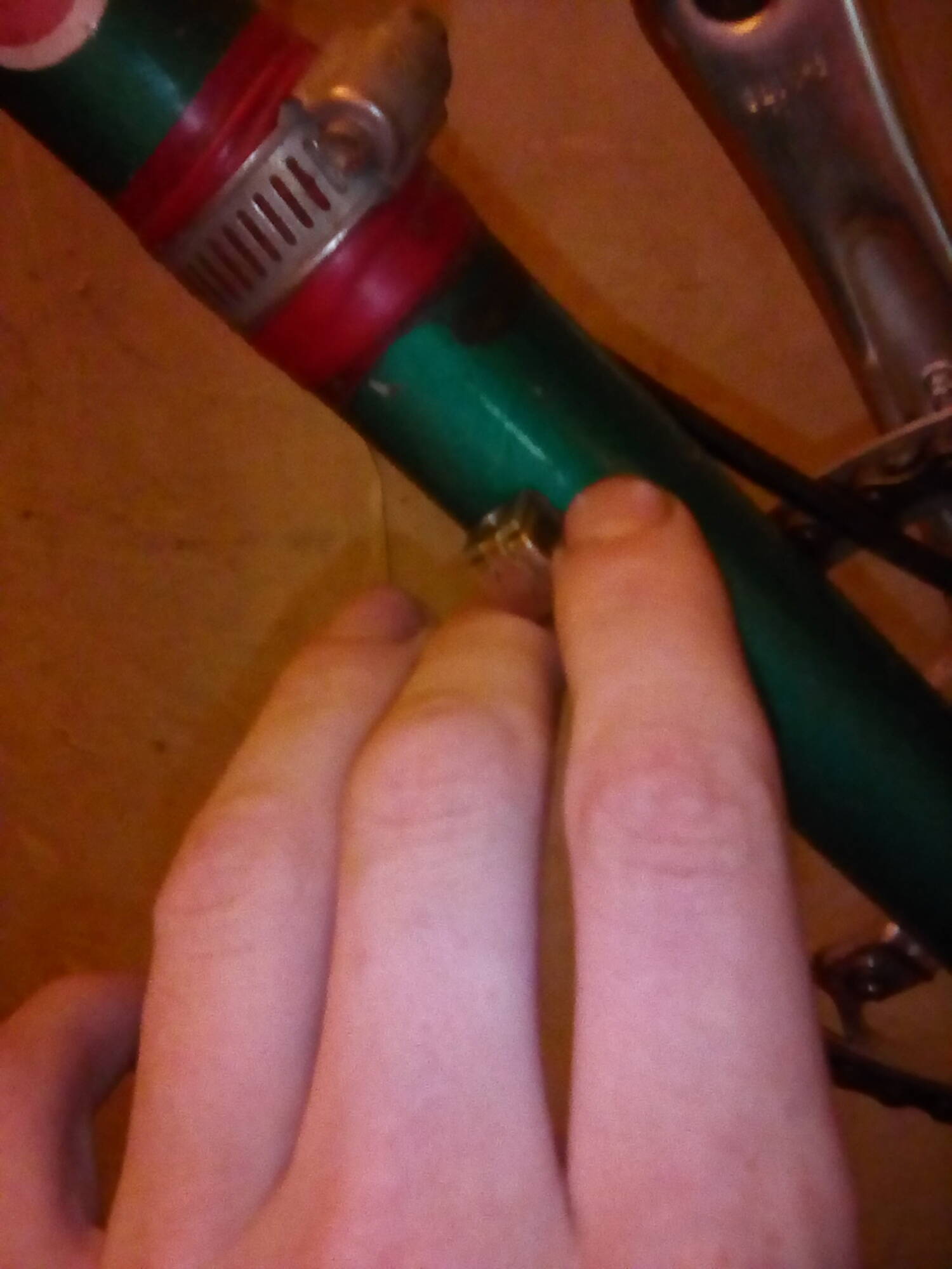 В общем отходило оно месяца 3 не очень регулярного пользования, и в один прекрасный момент, при попытке перебросить цепь на самую большую звезду, бонка с характерным "припойным" скрипом, лениво откололась от хомута, и вместо большой звезды цепь оказалась на самой маленькой. По приезду домой все зачистил и запаял нормальным серебряным припоем, с горелочкой, как положено.