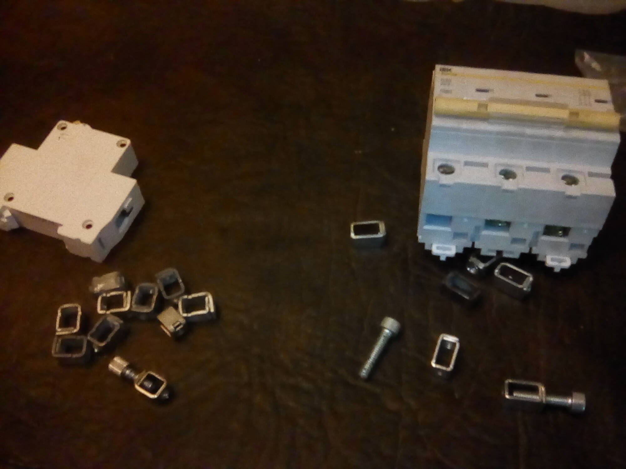 Комментарий к файлу: Справа бонки М6 от пускателя и трёхфазный автомат ВА 47-100 (в нём по конструктиву примерно тот же зажимной механизм тока у них корпус механизма тока малясь шире).