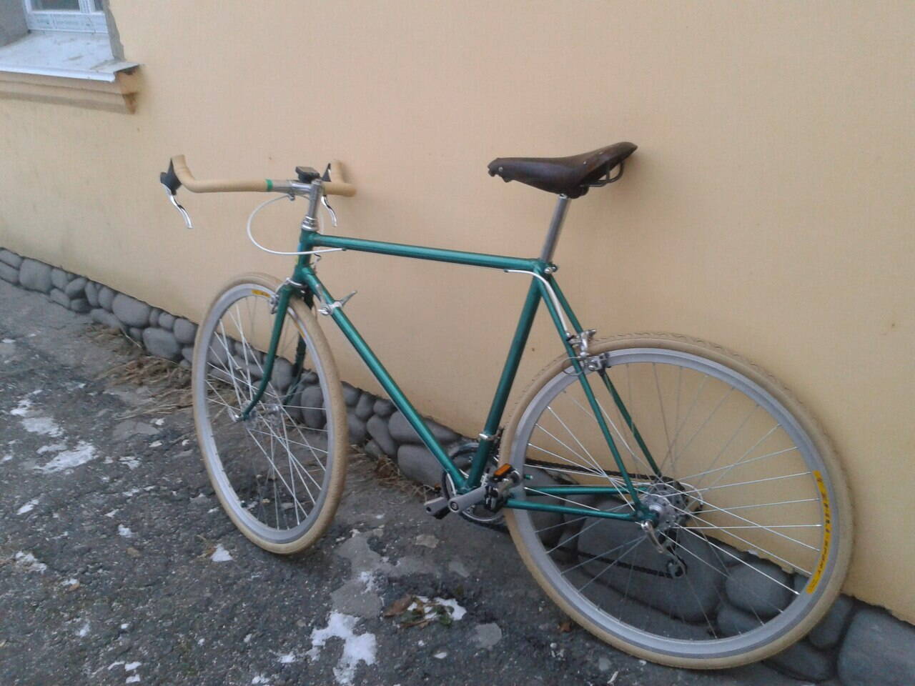 Рама попалась нульцовая,старт-шоссе, еще в бумаге, 90 года, на год младше чем я))) И потом понеслось, каждую детальку куплял в разных городах. Позже посчитав, на те деньги мог купить фирмачего шоссера.