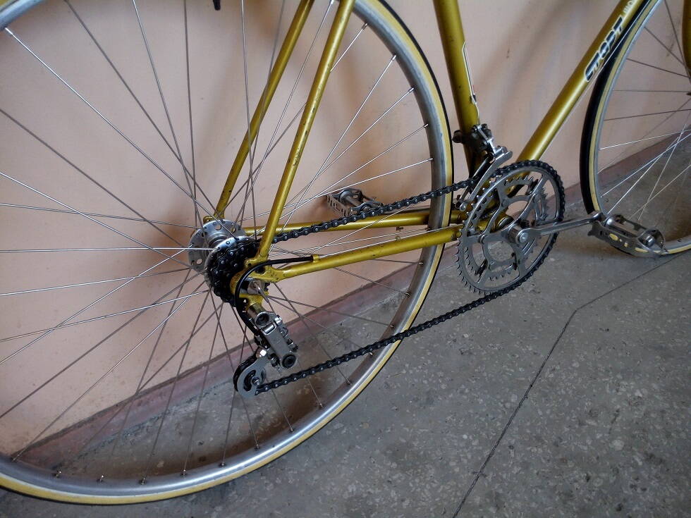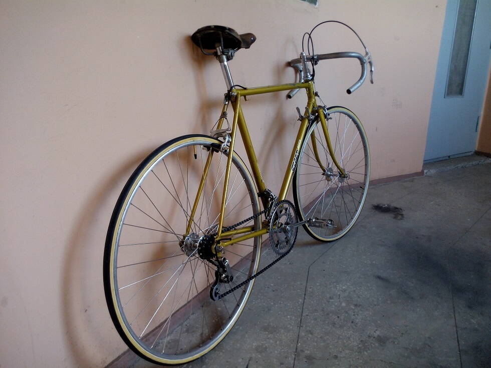 Небольшие замечания есть, рубашки тросиков идущие от тормозных ручек лучше проложить перед рулем и немного укоротить. Замок седла развернуть на 180 градусов ( так более классически, хотя и так как сейчас тоже можно, но у Вас подседел выдвинут высоко а значит будет правильнее назад развернуть). Передний переключатель опустить ниже на 15-20 мм, рамка должна быть ближе к звёздам. Моё мнение, что перекрашивать не нужно, а вот шильд найти и поставить было бы хорошо.
