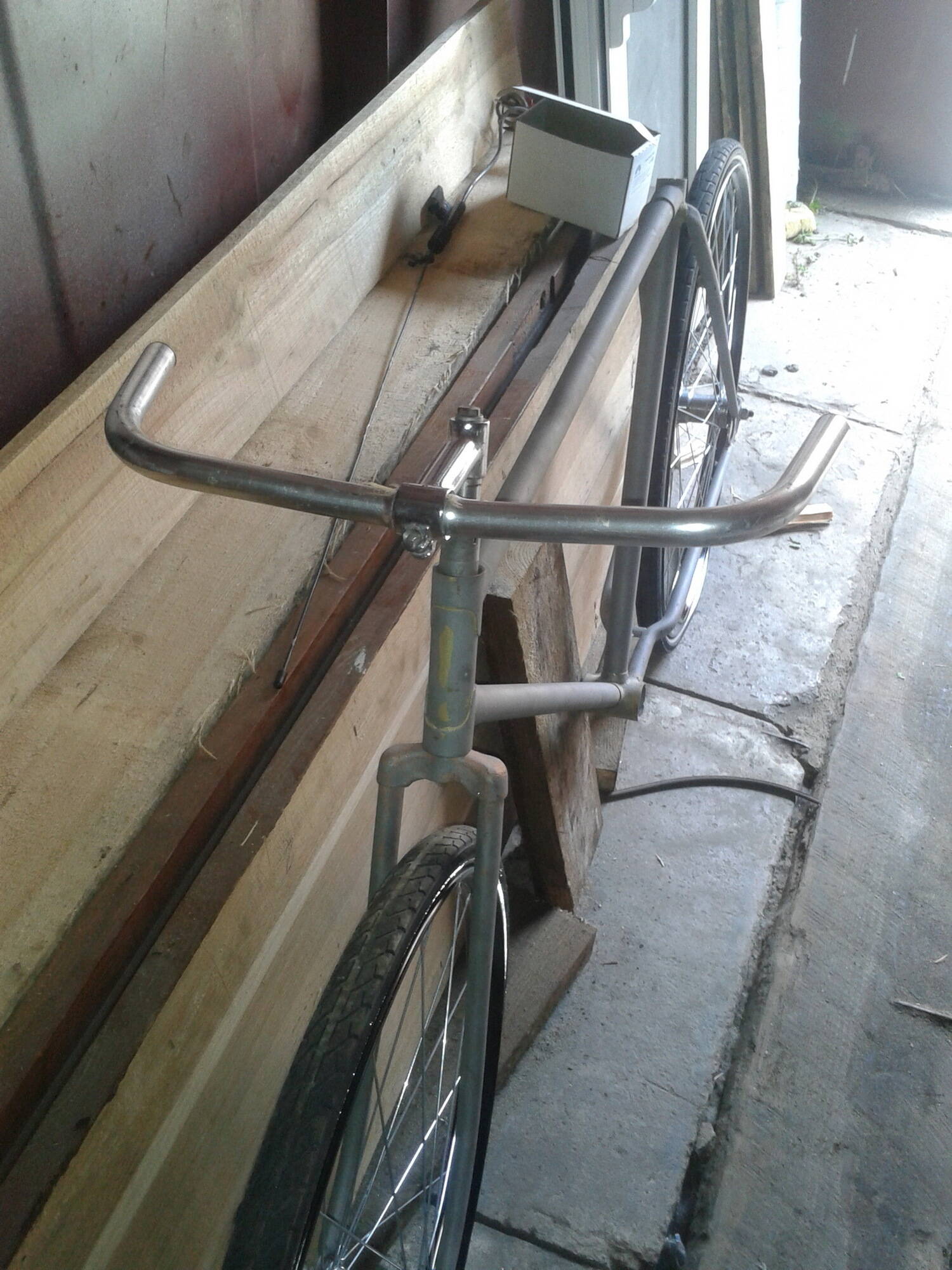 достал старую детскую раму ( о которой ранее писал) срезал кареточную трубу и перемычку. так как кареточная труба полностью не входила во внутрь - пришлось отрезать на длину резьбы и запресовывать кусочки по 3-3,5см. месный сварщик прихватил полуавтоматом акуратненько