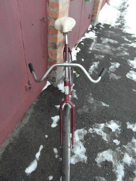 Есть не очень строгая, но закономерность: низкий руль-узкое седло, высокий руль-широкое седло. Вот мне на Бесплатный присралось очень захотелось поставить стартоновское узкое кожаное седло. В принципе, для коротких дачных поездок там был сначала высокий и очень широкий руль и широкая (китайский поролон, на фотках сидуха другая) сидуха. Это было хорошо и удобно. Но с вертикальной посадкой удобное стартоновское седло превратилось в анальную кару. Поэтому с Аиста друга (салатовый из "Мастер-класса") был скручен минский руль и поставлен "бараном". По-антигагарински :lol: (Коллегу Gagarinsа бесит такая установка рулей, и мы над ним издеваемся :-P ). Посадка стала удобной и более спортивной. Спицами велу был придан подрывной динамичный (как для такой комплектухи) характер, и получился тоже Паф-рейсер. Только дачный, кисточкой крашеный. Там фотки в таком виде тоже есть.