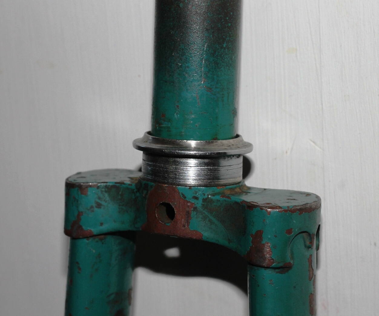 Еще взял у мужичка пару проставок с резьбой разной толщины. Они навинчиваются после верхнего конуса, перед шайбой с усом. Как раз для случаев, когда вилка длинновата. Оказалось, что зря взял. Резьба оказалась импортной дюймовой.
